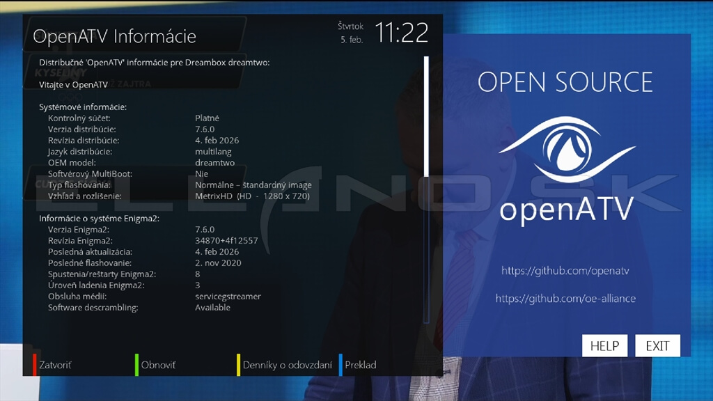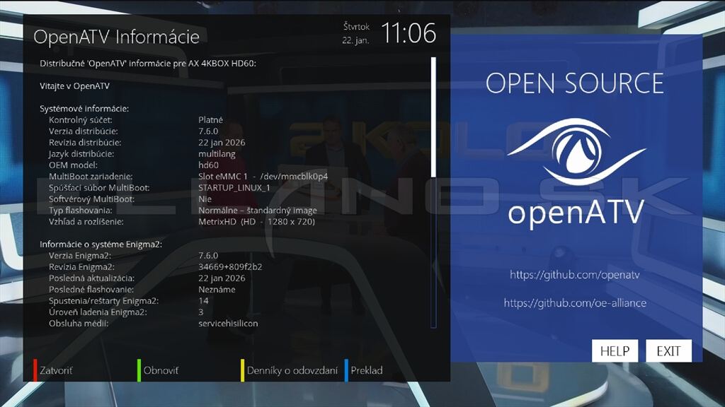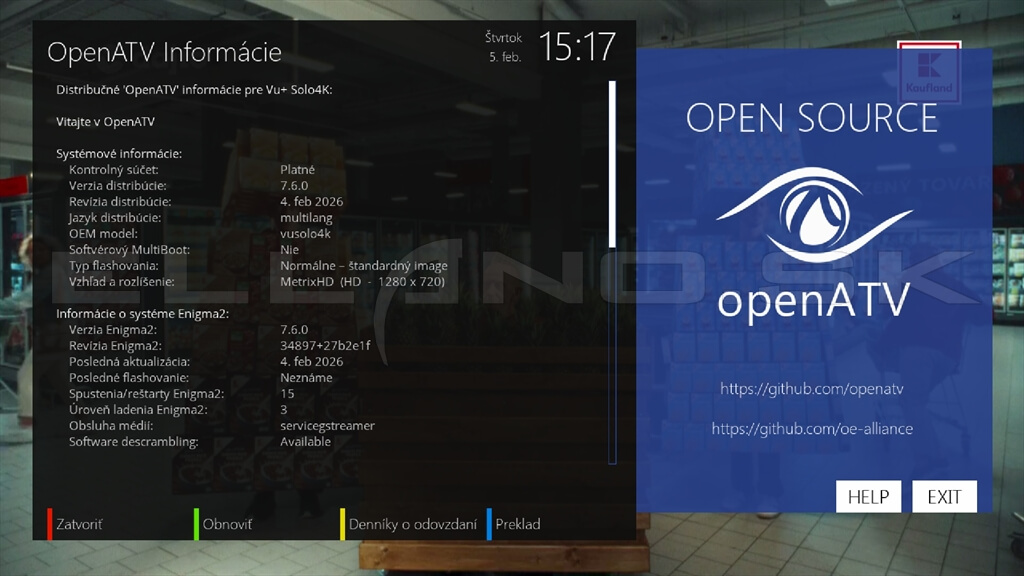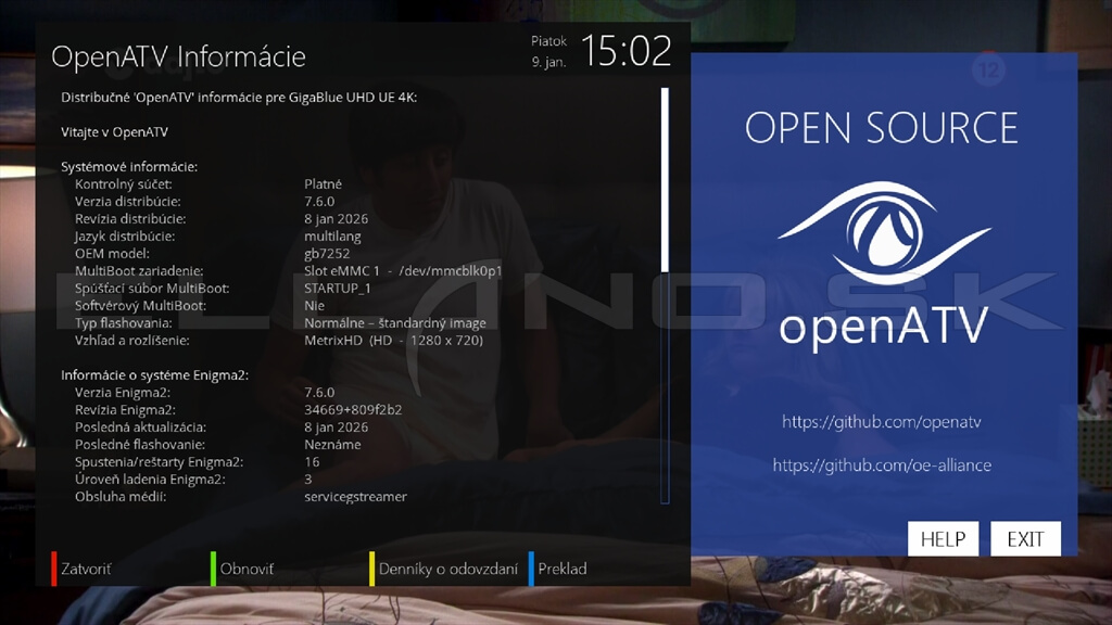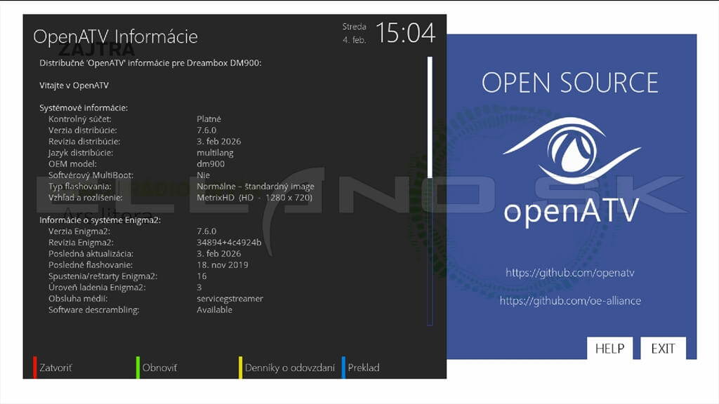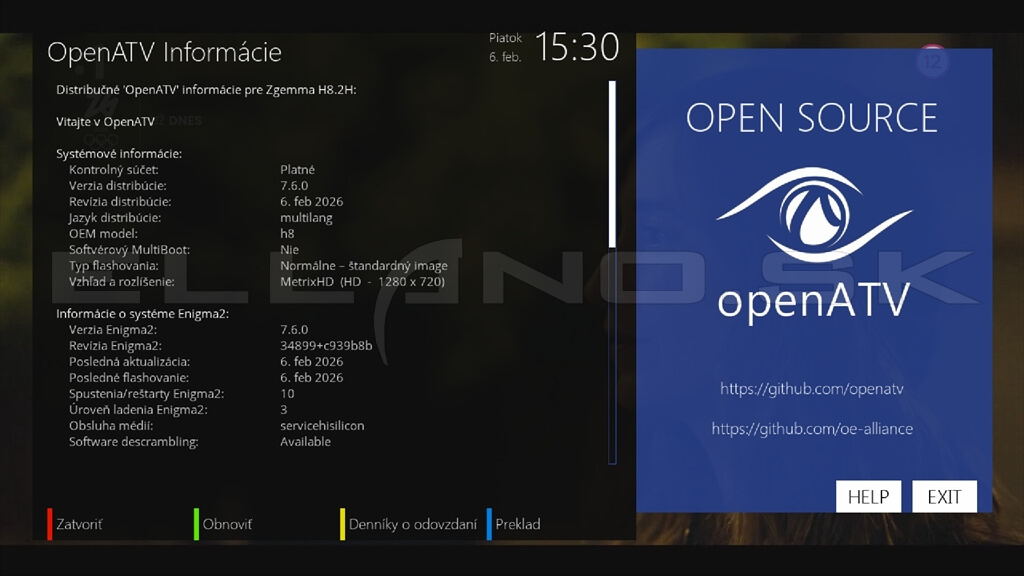 Systémové informácie OpenATV 7.6.0: