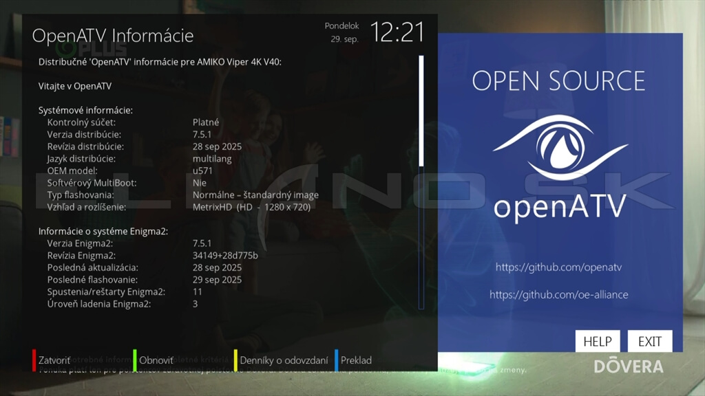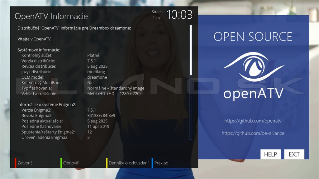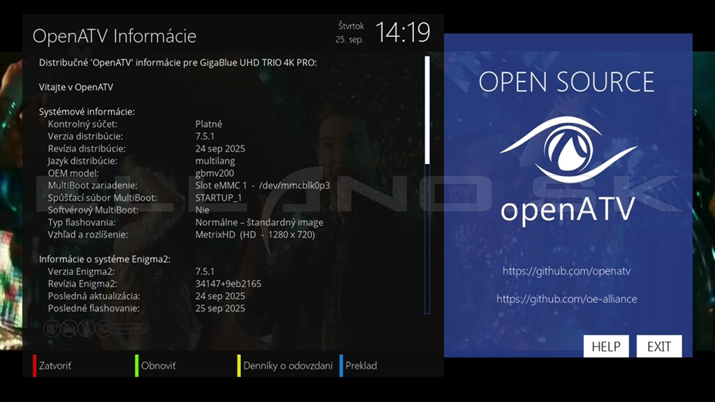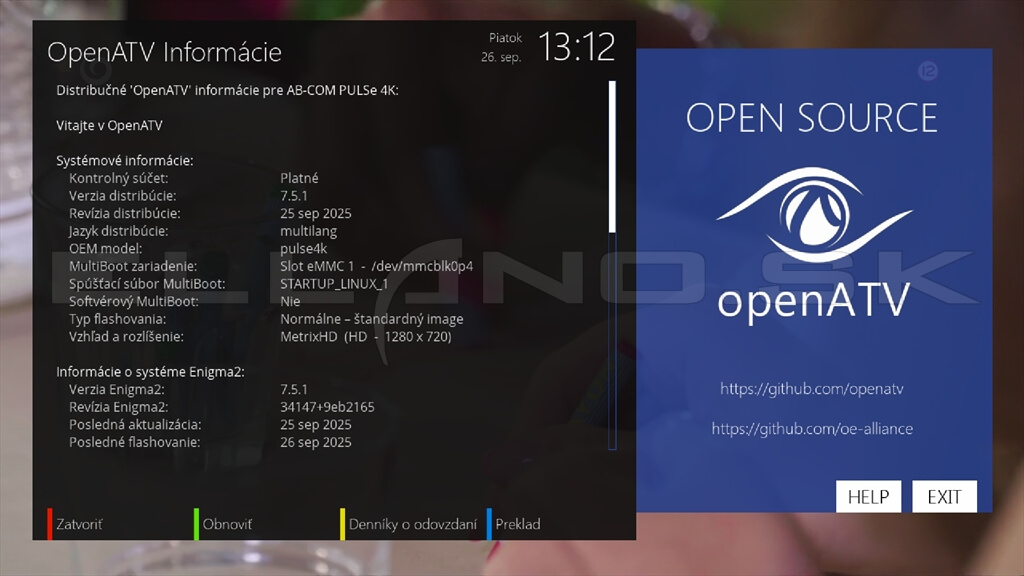 Oznamujeme zákazníkom firmy ELLANO.SK, ktorí si u nás zakúpili satelitný prijímač s Enigma 2, že sme pripravili pre viaceré modely nové, nakonfigurované zálohy systému Enigma 2 s image OpenATV 7.5.1 a to konkrétne pre prijímače AB Pulse 4K, Amiko Viper S, Amiko Viper 4K V40, Gigablue UHD Trio 4K PRO, Gigablue UHD Quad 4K PRO, Dreambox One 4K a Dreambox One 4K Combo.