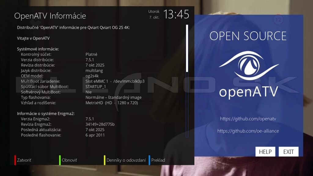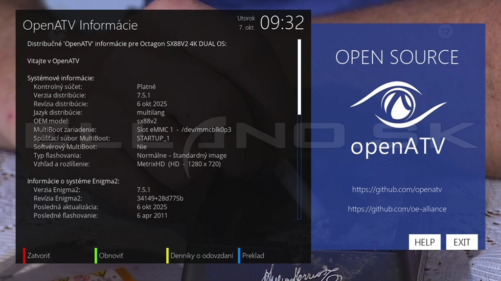 Oznamujeme zákazníkom firmy ELLANO.SK, ktorí si u nás zakúpili satelitný prijímač s Enigma 2, že sme pripravili pre viaceré modely nové, nakonfigurované zálohy systému Enigma 2 s image OpenATV 7.5.1 a to konkrétne pre prijímač Octagon SX88 4K / Octagon SX88 4K v2 , Octagon SF4008, Octagon SFX6018, Vu+Zero v2, Vu+Zero 4K, Qviart OG 2S 4K.