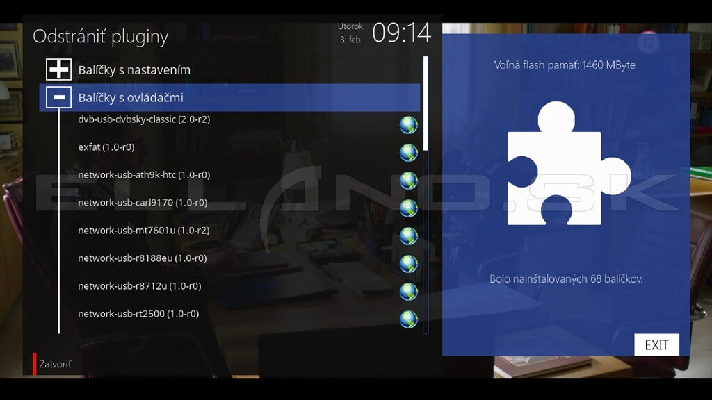Ak si nie ste istí, či je driver už nainštalovaný, overíte to priamo v Enigma2. Vojdite do Menu - Prehliadač pluginov a stlačte červené tlačidlo (zobrazí sa zoznam už nainštalovaných doplnkov).