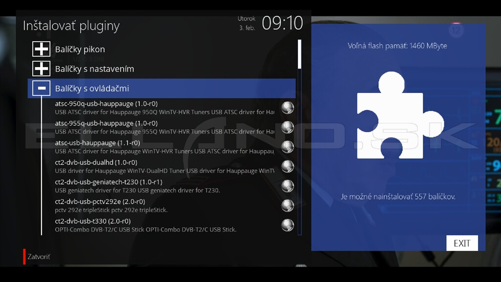 Zobrazia sa skupiny doplnkov, ktoré sú v prijímači už nainštalované (a dajú sa prípadne aj odinštalovať). Pre kontrolu ovládačov vojdite do skupiny Balíčky s ovládačmi a potvrďte OK. Uvidíte zoznam všetkých nainštalovaných driverov.