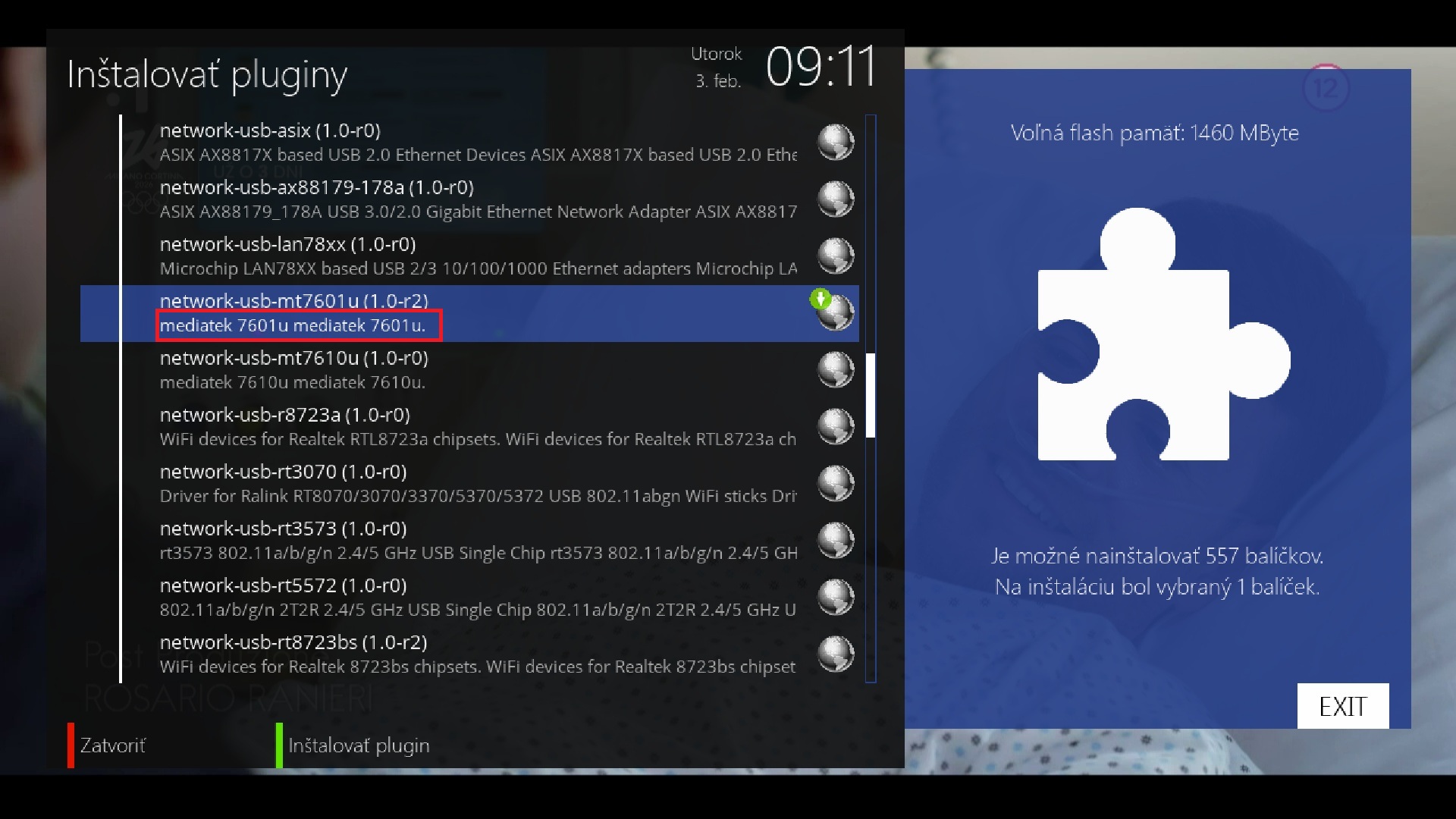 Ak máte WiFi USB adaptér s chipsetom MT7601u, do prijímača je potrebné doinštalovať driver network-usb-mt7601u.
