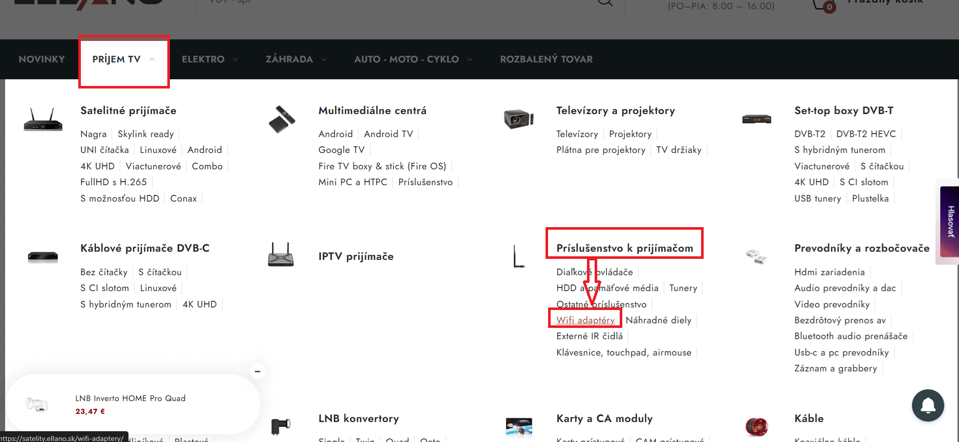 V našom e-shope nájdete WiFi USB adaptéry v kategórii Príjem TV / Príslušenstvo k prijímačom / WiFi adaptéry, kde sa zobrazia všetky aktuálne dostupné modely.