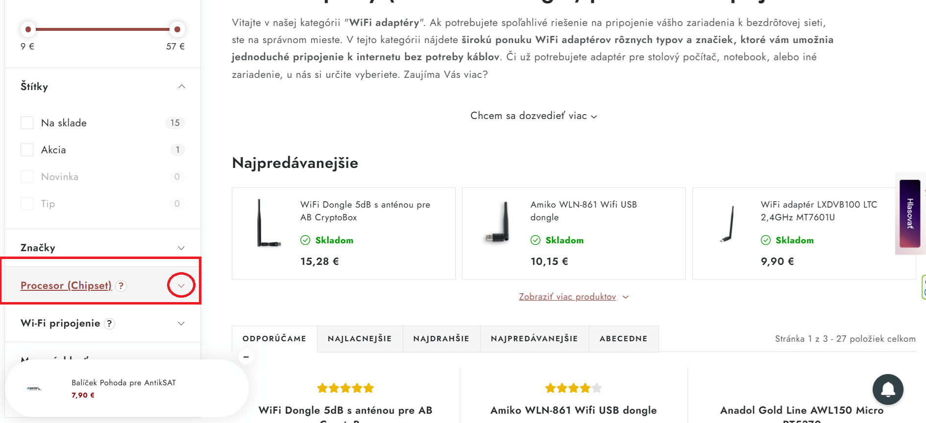 Ak chcete vyberať WiFi USB adaptér podľa konkrétneho chipsetu, využite filter Procesor (Chipset) v ľavom bočnom paneli. Zobrazia sa vám všetky chipsety WiFi adaptérov, ktoré máme aktuálne v ponuke, spolu s počtom dostupných modelov.