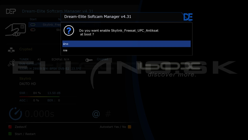 Nadídete na softcam, ktorý chcete spustiť a stlačíte zelené tlačidlo na diaľkovom ovládači. Na obrazovke sa zobrazí okno s oznamom o spúšťaní softcamu.