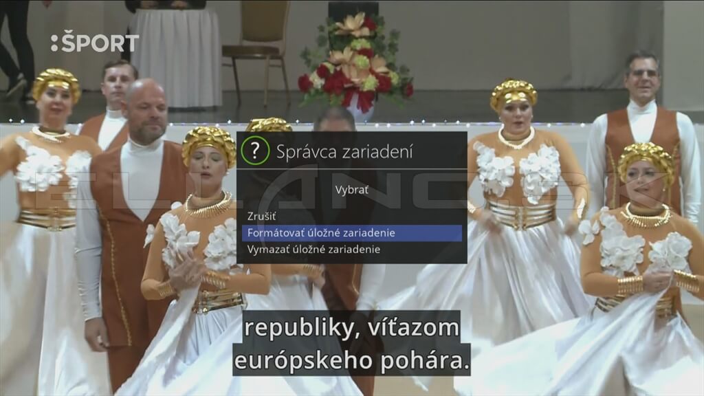 V menu Správca zariadení stlačte tlačidlo MENU na diaľkovom ovládači. Zobrazí sa vám okno s ponukou pre výber možností, kde vyberiete a potvrdíte voľbu Formátovať úložné zariadenie.
