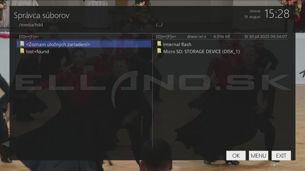 Výsledný adresár priečinkov microSD karty bude vyzerať ako vidíte na obr. nižšie. Plugin Správcu súborov môžete zavrieť opakovaným stláčaním tlačidla Exit na dialkovom ovládači a reštartujte Enigmu cez menu Vypnutie/Reštartovať - Reštart GUI.