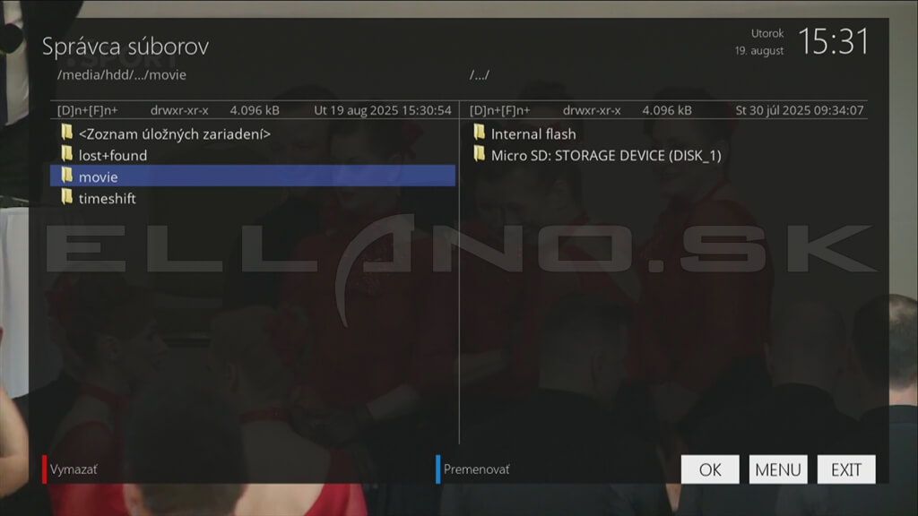 Aby vám fungovalo nahrávanie a timeshift, je potrebné na microSD karte vytvoriť priečinok s názvom movie pre nahrávanie a priečinok timeshift pre nahrávanie s časovým posunom.