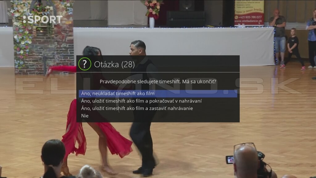 Pokiaľ chcete timeshift ukončiť a dostať sa na živé vysielanie, tak stlačte tlačidlo Stop na diaľkovom ovládači a vyberte voľbu zastavenia.