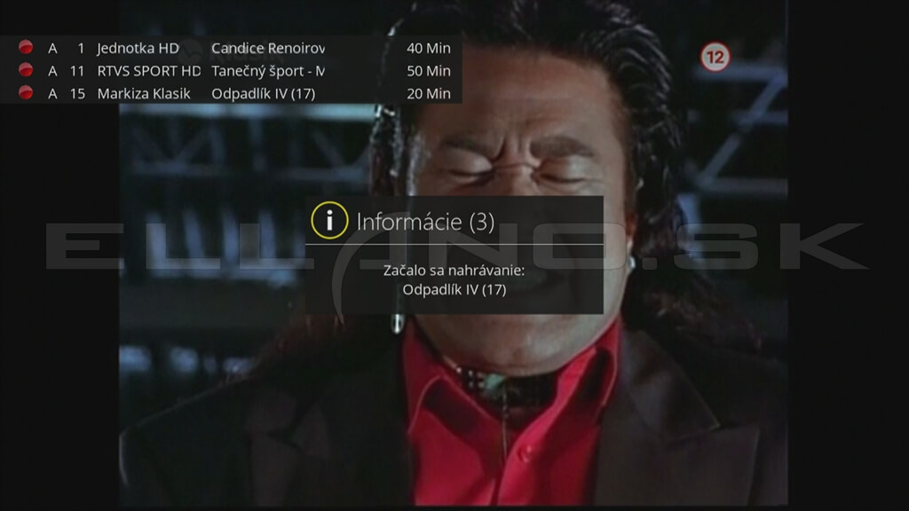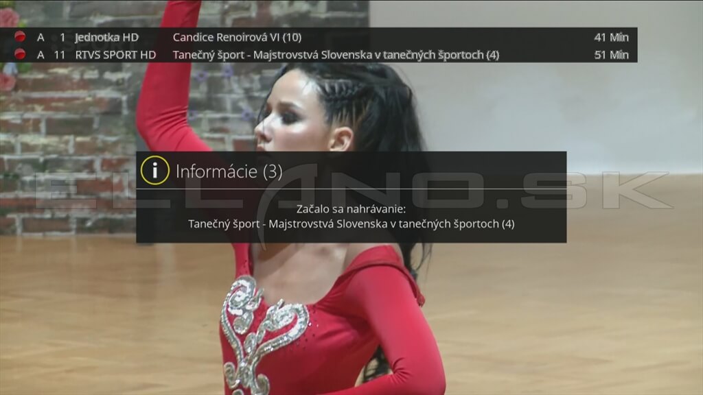 Rovnakým spôsobom môžete spustiť aj nahrávanie ďalšej stanice, ktorý má dostupný voľný tuner (v prípade prijímača s jedným SAT tunerom je to stanica v rámci toho istého transpondéru, ako je nahrávaná stanica).