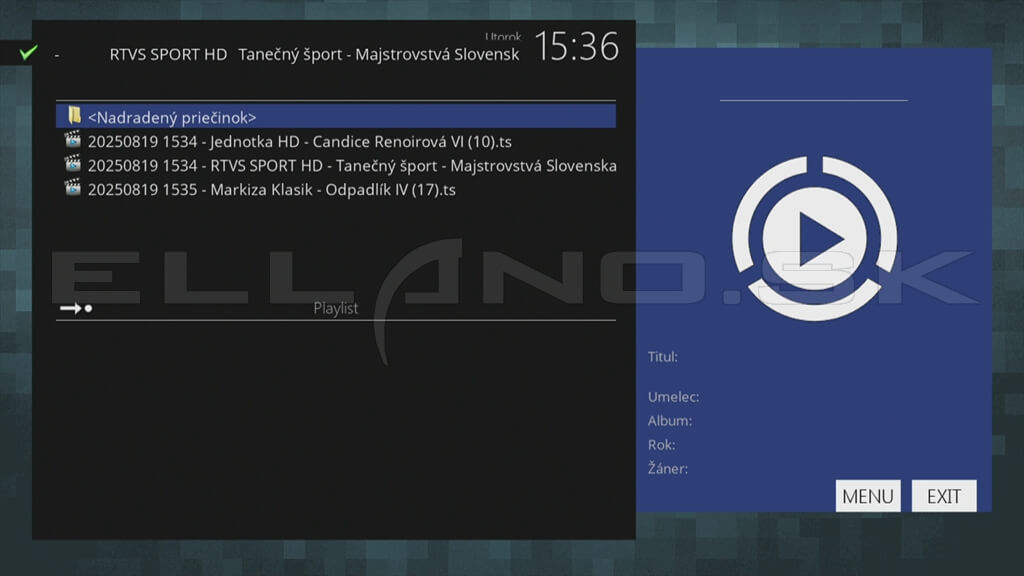 💡 Tip pre vás: Ak chcete podrobnejšie informácie o práci s nahrávkami a funkciou timeshift, prečítajte si náš podrobný návod v kapitole Nahrávanie, timeshift a prehrávanie nahrávok v OS Enigma2 .