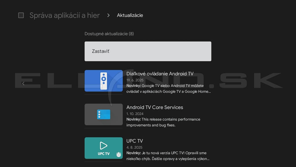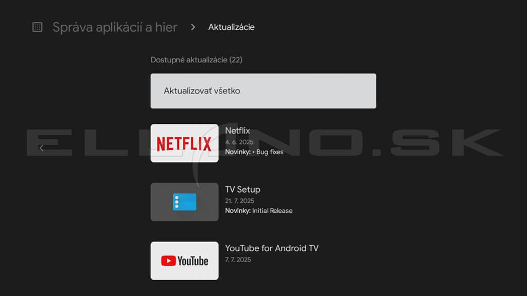 Aktualizácia aplikácií v Android TV boxe