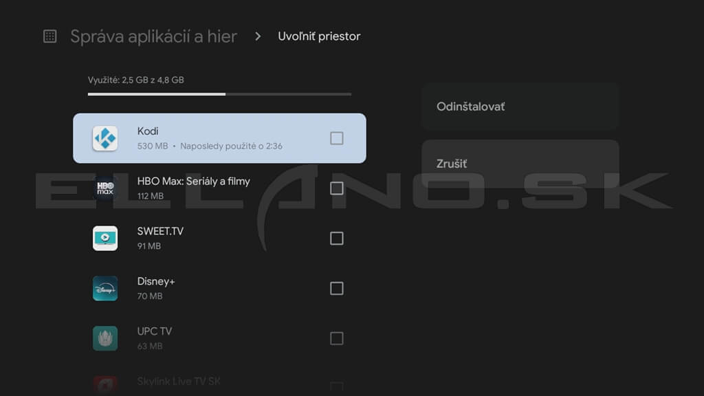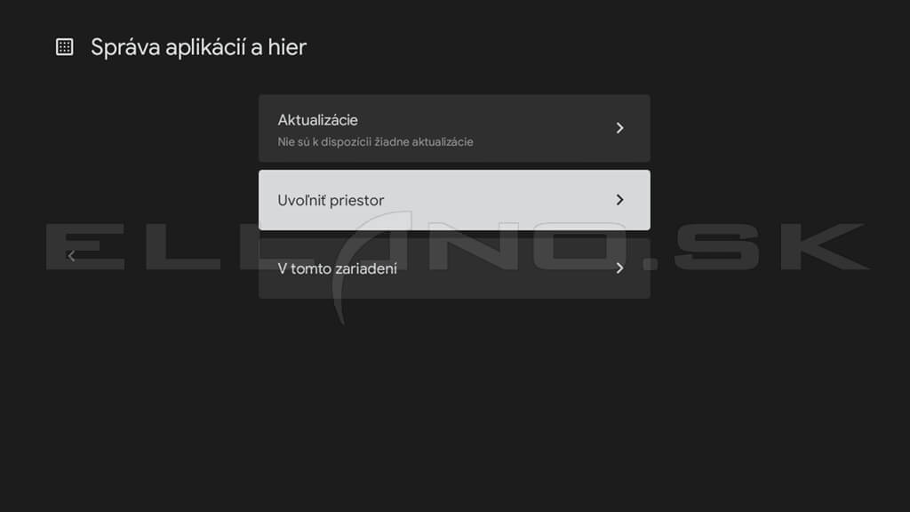 Položka Uvoľniť priestor je praktická najmä pri lacnejších TV boxoch s obmedzeným úložiskom. Odtiaľto môžete rýchlo odinštalovať aplikácie, ktoré nepoužívate.