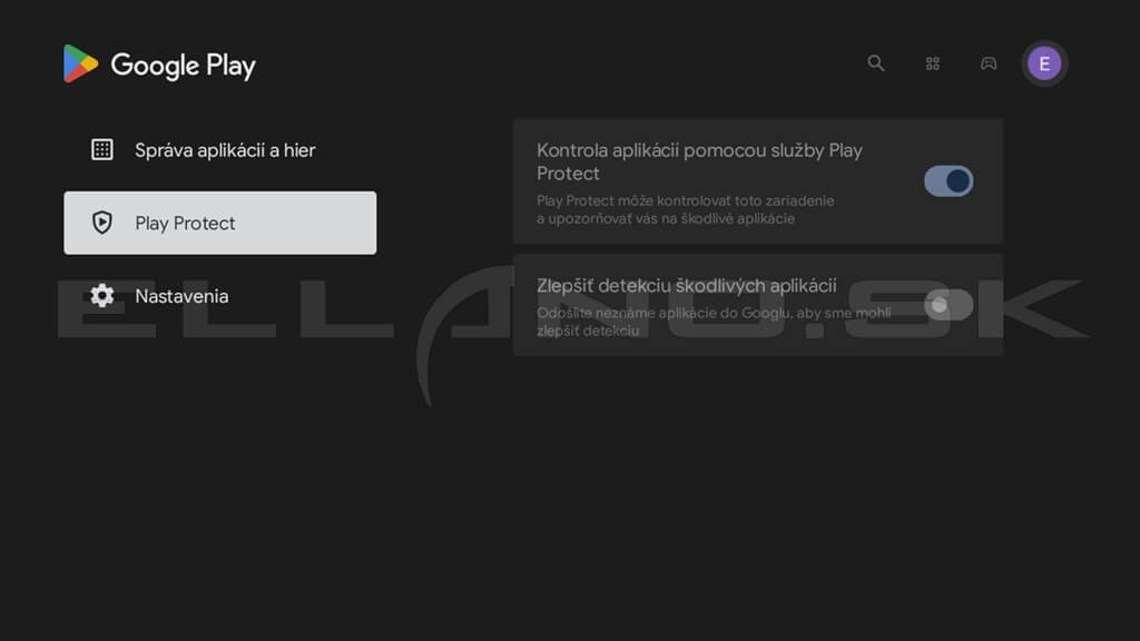 Funkcia Play Protect kontroluje aplikácie z hľadiska bezpečnosti. Odporúčame ju ponechať zapnutú.