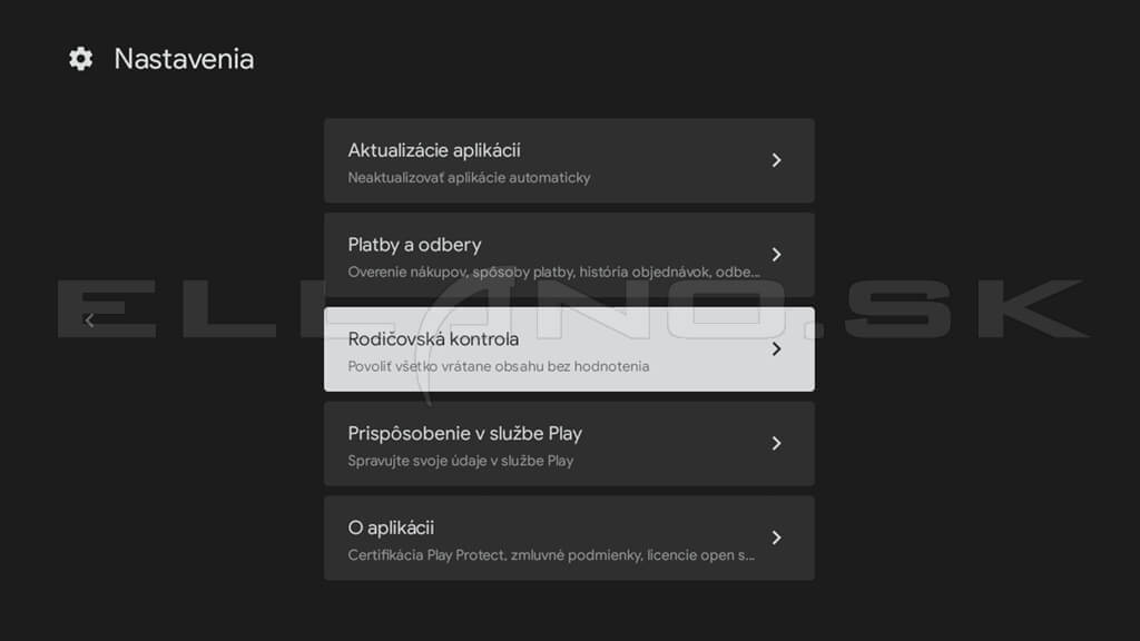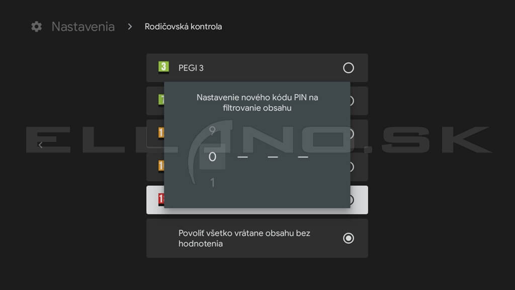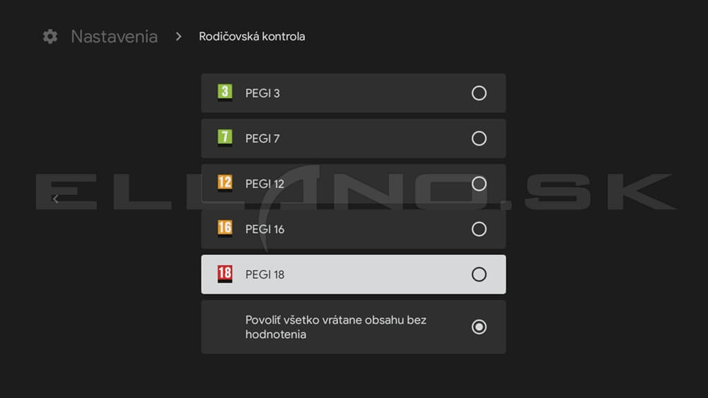 Rodičovská kontrola umožňuje obmedziť obsah podľa vekovej hranice a zabezpečiť aplikácie PIN kódom.