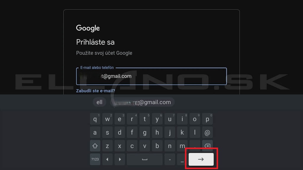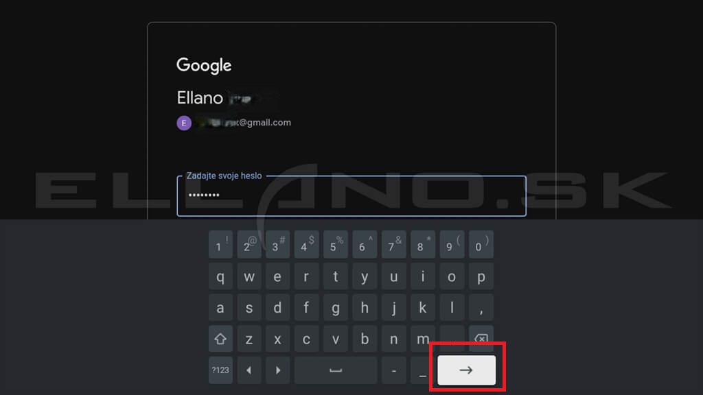 Do prihlasovacieho poľa zadáte svoju emailovú adresu a potvrdíte pokračovanie. Pomocou virtuálnej klávesnice následne zadáte heslo k účtu.