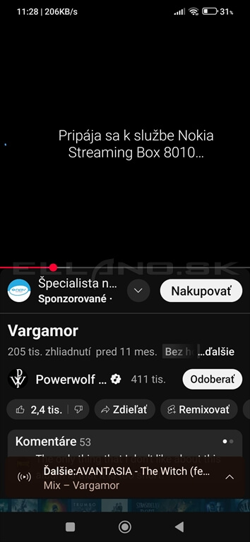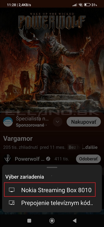 Po úspešnom pripojení sa video prehráva priamo na obrazovke televízora a smartfón slúži ako diaľkové ovládanie pre aplikáciu YouTube.