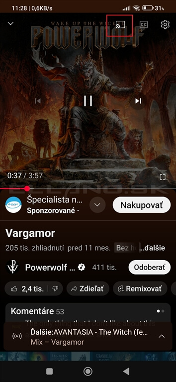Po pripojení sa na TV automaticky spustí aplikácia YouTube a začne sa prehrávať zvolené video. Výhodou tohto spôsobu je, že prehrávanie aj výber ďalších videí môžete pohodlne ovládať priamo zo smartfónu.